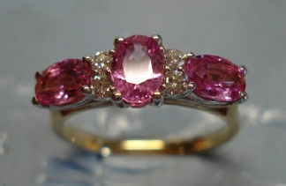3 x Pink Sapphires and 4 x smaller(2mm) diamonds make up this beautiful ring set
