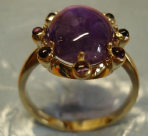 The Cad image, the stone is shown as blue here, but traditionally a Bishop’s ring always has an Amethyst which is lilac/purple